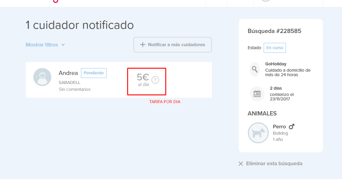 La tarifa de suscripción incluye tan sólo el precio por la suscripción. La compensación al cuidador será determinada por los propios cuidadores y habrá que añadirla a la tarifa de suscripción. Podrás encontrar el precio de los cuidadores en sus perfiles cuando crees una búsqueda y veas sus perfiles.