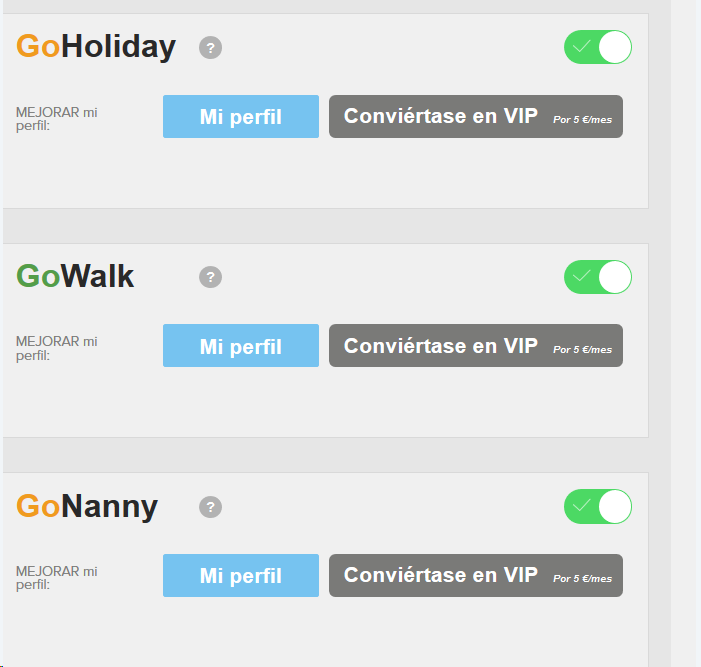 -A continuación, haz clic en "Mi perfil" en cada uno de los diferentes servicios (GoHoliday, GoWalk, GoNanny)